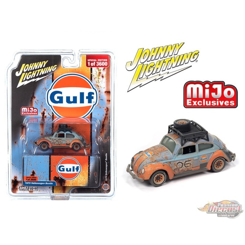 1970 Volkswagen Beetle Gulf Weathered avec support Bleu - Limited 3 600 - Johnny Lightning 1/64 - JLCP7453