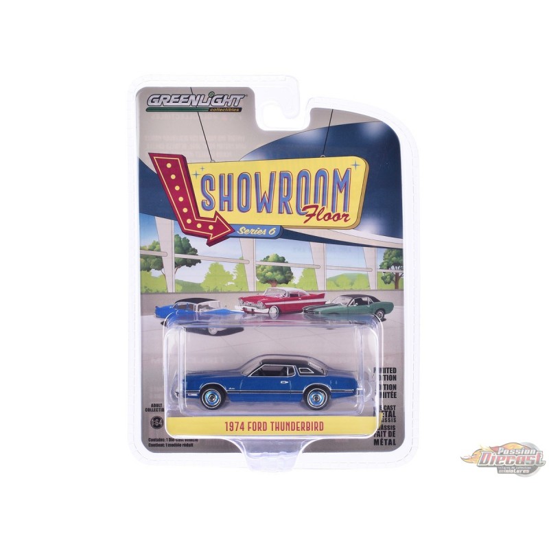 Ford Thunderbird 1974 en bleu Starfire - Showroom Floor Series 6 - 1/64 Greenlight - 68060 C