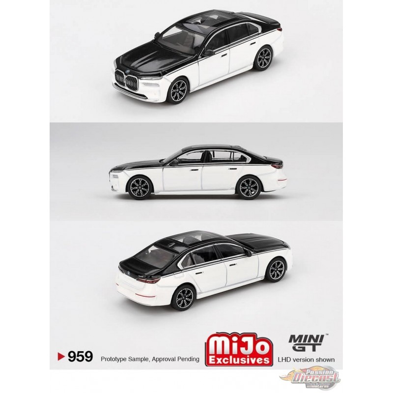 BMW i7 xDrive60 Blanc Alpin / Saphir Noir - Mini GT - 1:64 - MGT00959