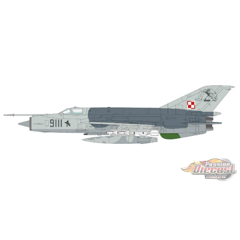 L'armée de l'air polonaise a utilisé le MiG-21MF, une variante tardive du chasseur de conception soviétique, du début des années 1970 jusqu'au début des années 2000. La version MF (Modernizirovannyy Forsirovannyy) était équipée d'un moteur R-13-300 amélioré, d'une avionique plus performante et du radar RP-22, permettant un meilleur guidage des missiles. Armé de missiles air-air R-3S, R-13M et R-60, il a joué un rôle clé dans la défense aérienne de la Pologne pendant la guerre froide. Le MiG-21MF a servi dans de nombreux régiments de chasseurs avant d'être remplacé par des avions occidentaux comme le F-16C/D Fighting Falcon dans les années 2000.