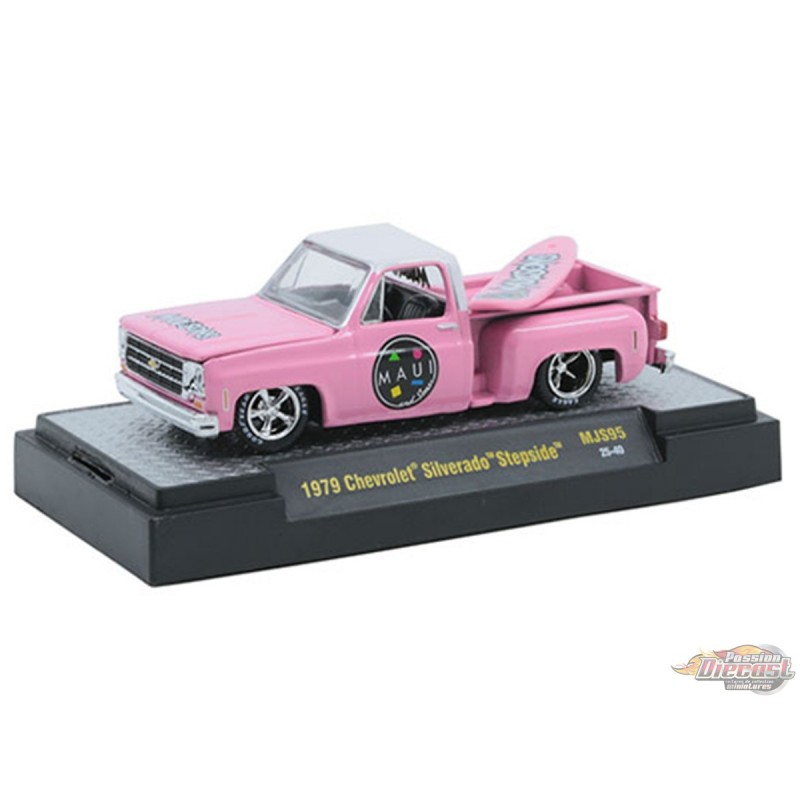(Preorder) 1979 Chevy Silverado Stepside with Surfboard Maui & Son - Rose - MiJo Exclusives - M2 Machine - 1:64 - 31500-MJS95