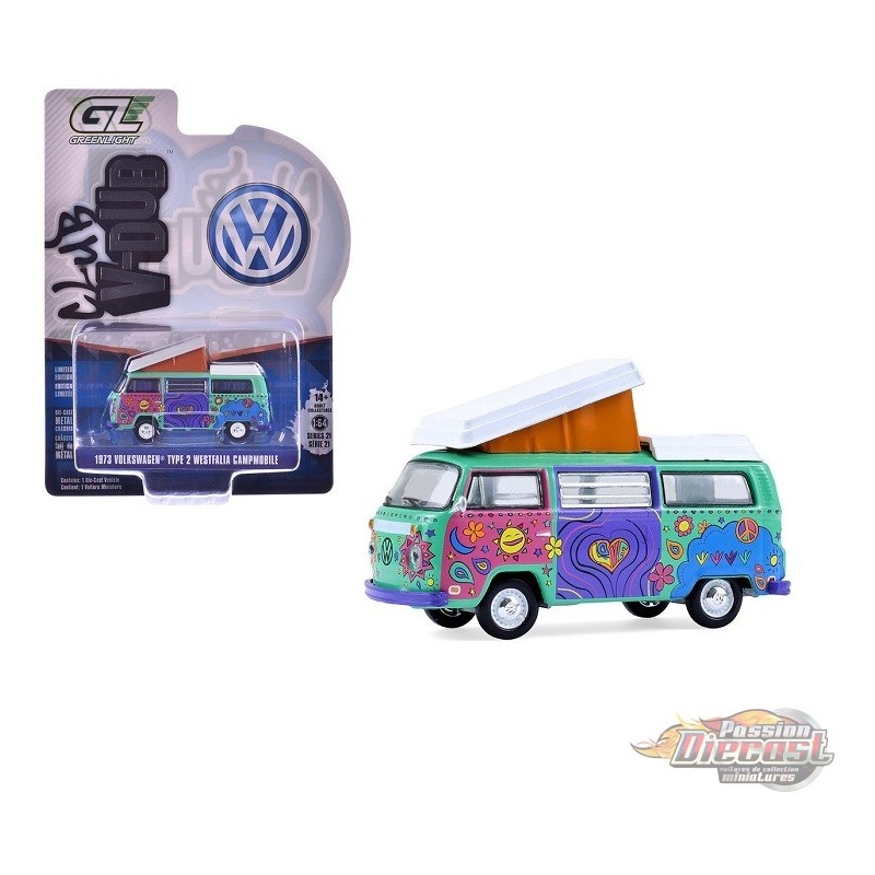 (Preorder) 1973 Volkswagen Type 2 Westfalia Camper - Music Festival Van - Club Vee-Dub Series 21 - 1/64 Greenlight - 36120 C