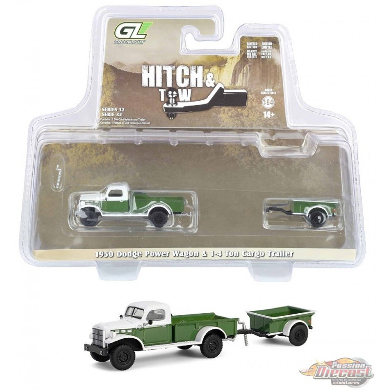 Dodge Power Wagon 1950, vert et blanc, remorque cargo 1/4 tonne - Hitch & Tow Series 32 - 1/64 GL - 32320 A