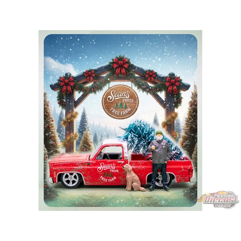 (Preorder) Diorama Seans Fresh Tree Farm Chevrolet Silverado 1977 & figurine de Sean et chien - M2 Machine - 1:64 - 67500-MJS01