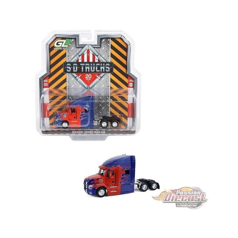 (Preorder) Camion Mack Anthem 2019, cabine bleue avec flammes rouges - S.D Trucks Series 20 - 1/64 Greenlight - 45200 C